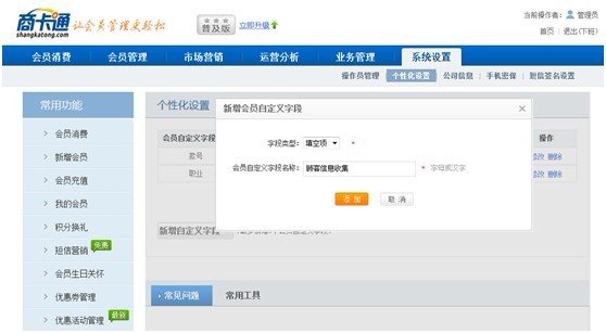a. 系统设置-个性化设置,新增自定义字段(顾客信息收集)。