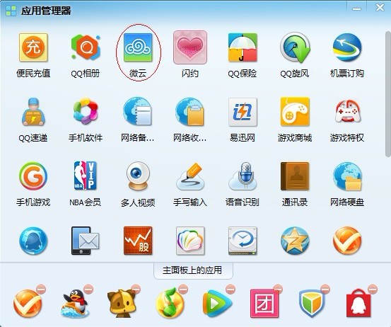 第三步,备份到电脑上之后,有的商户觉得还不放心怎么办呢?保存到U盘上,但是U盘有时候忘记携带,不是很便捷。这边还有个建议,大家都有QQ,可以定期把备份的表格上传到QQ微云上面进行保存。具体操作流程:打开QQ应用管理器,选择微云: